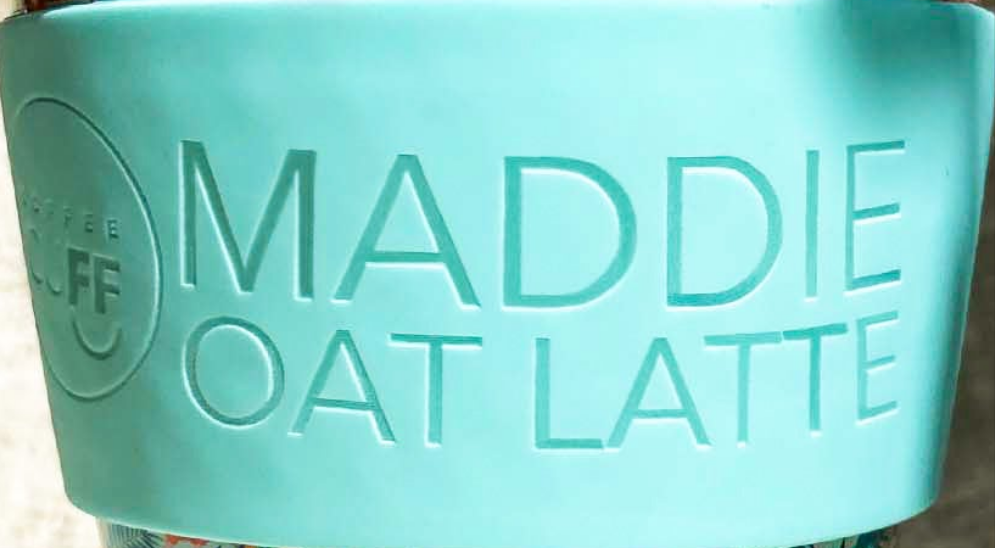 16oz Large Bamboo Cup in Charcoal Grey and Personalised Mint Cuff